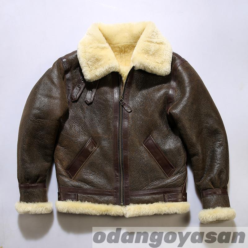 ムートコート ムートンジャケット B3フライトジャケット 革ジャン 毛皮B-3ムートンジャケット 本革フライトジャケット 本革 復古調 本皮 羊革 メンズ 防寒