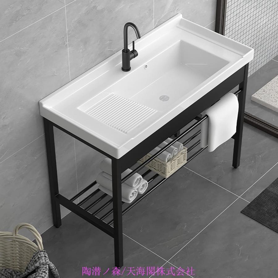 【ガーデンシンク】セラミック+ステンレススチールのコンビネーションデザイン、丈夫で耐摩耗性、250kgに耐えることができ、安定した構造、美しく耐久性があり、大きな収納スペース、大小のアイテムを簡単に収納でき、バスルームを新品のように見せます。