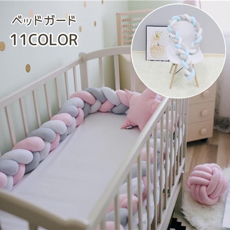 ベビーベッドガード ベビー用品 200cm 2m ベッドガード ベッドフェンス クッション ノットクッション 赤ちゃん ベッドサイド 三つ編み 3本編