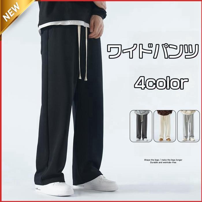 ワイドパンツ メンズ スウェット パンツ ロング ストレート ゆったり 無地 トレーニング ルームウェア カジュアル シンプル 秋