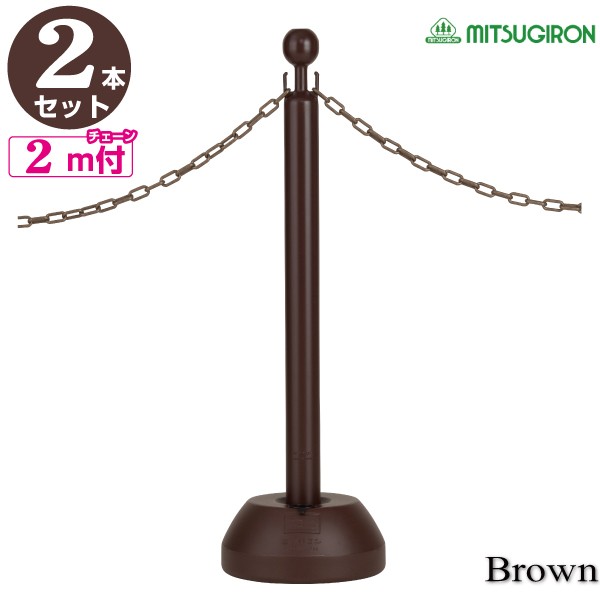 駐車場 ポール チェーンスタンド ブラウン2本セット プラスチックチェーン2m付