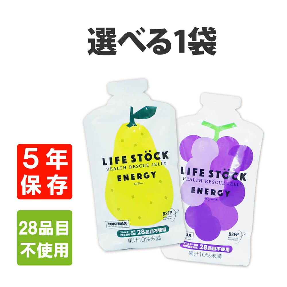 非常食 5年保存 防災備蓄用ゼリー LIFESTOCK エナジータイプ 100g グレープ or 洋ナシ