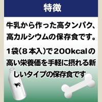 1袋(8本入)で200kcalの高い栄養価を手軽に摂れる新しいタイプの保存食です。