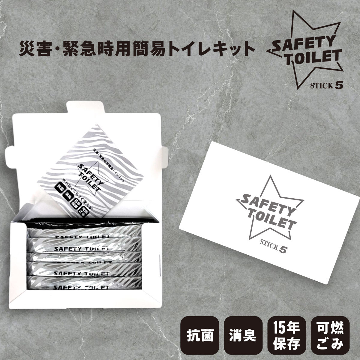 SAFETY TOILET STICK5 携帯トイレ5回セット 簡易トイレ 災害用 非常用 防災グッズ 凝固剤 15年保存 長期保存 防災備蓄 アウトドア 備蓄