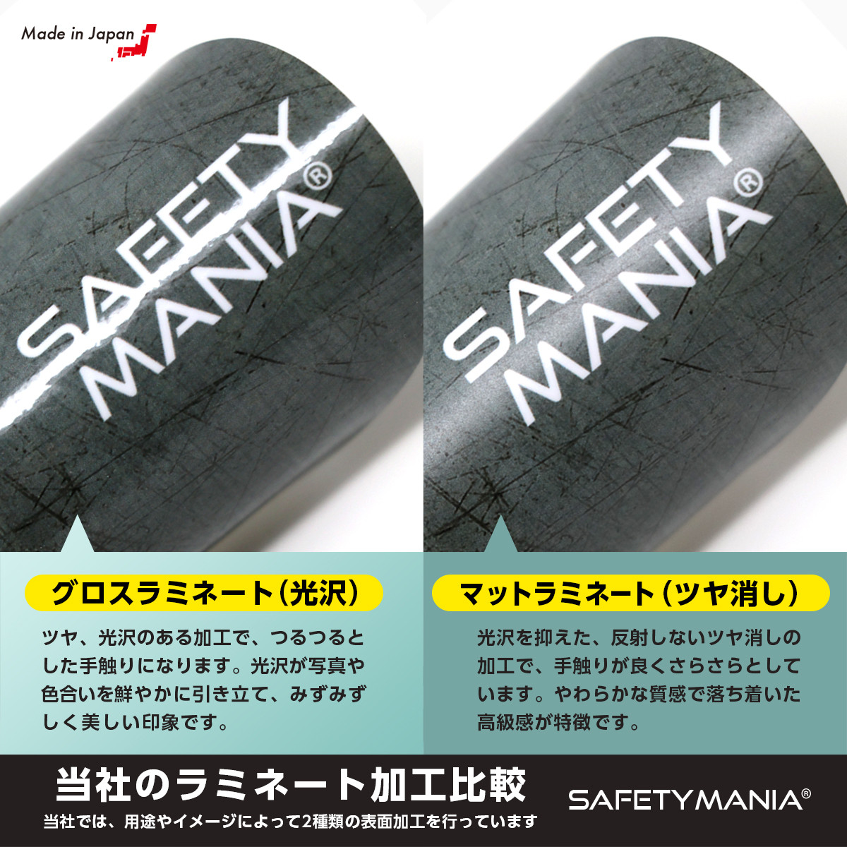 1.高視認性 マット加工 表面は光沢のないマットラミネート加工のため、太陽光や照明が反射せずギラつきません。高い視認性を確保し、高級感のある仕上がりです。