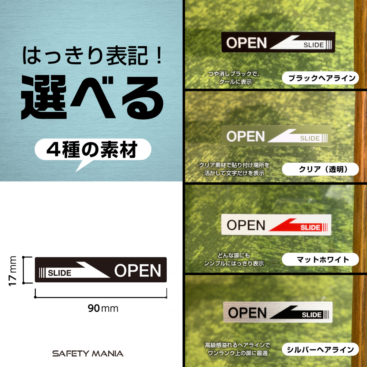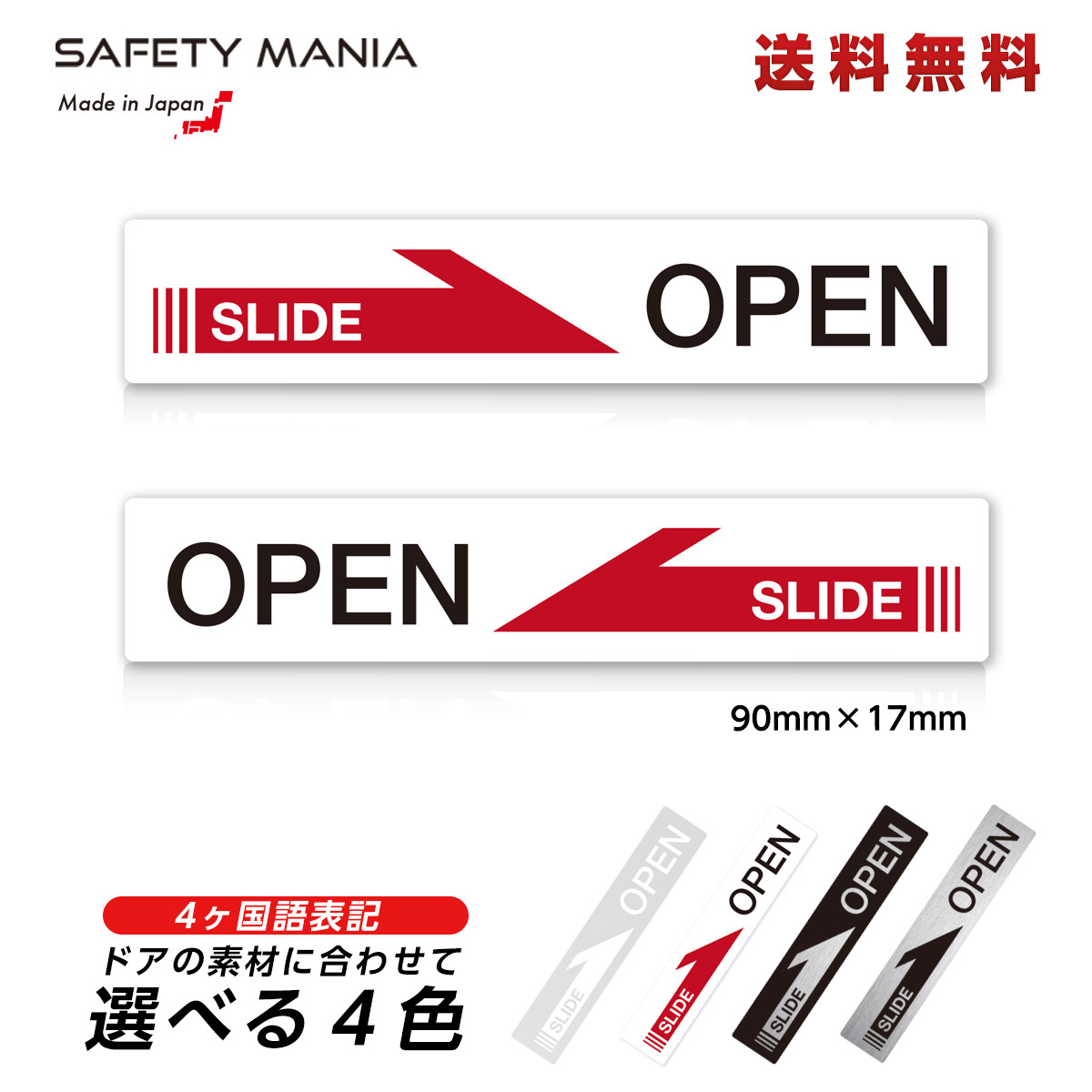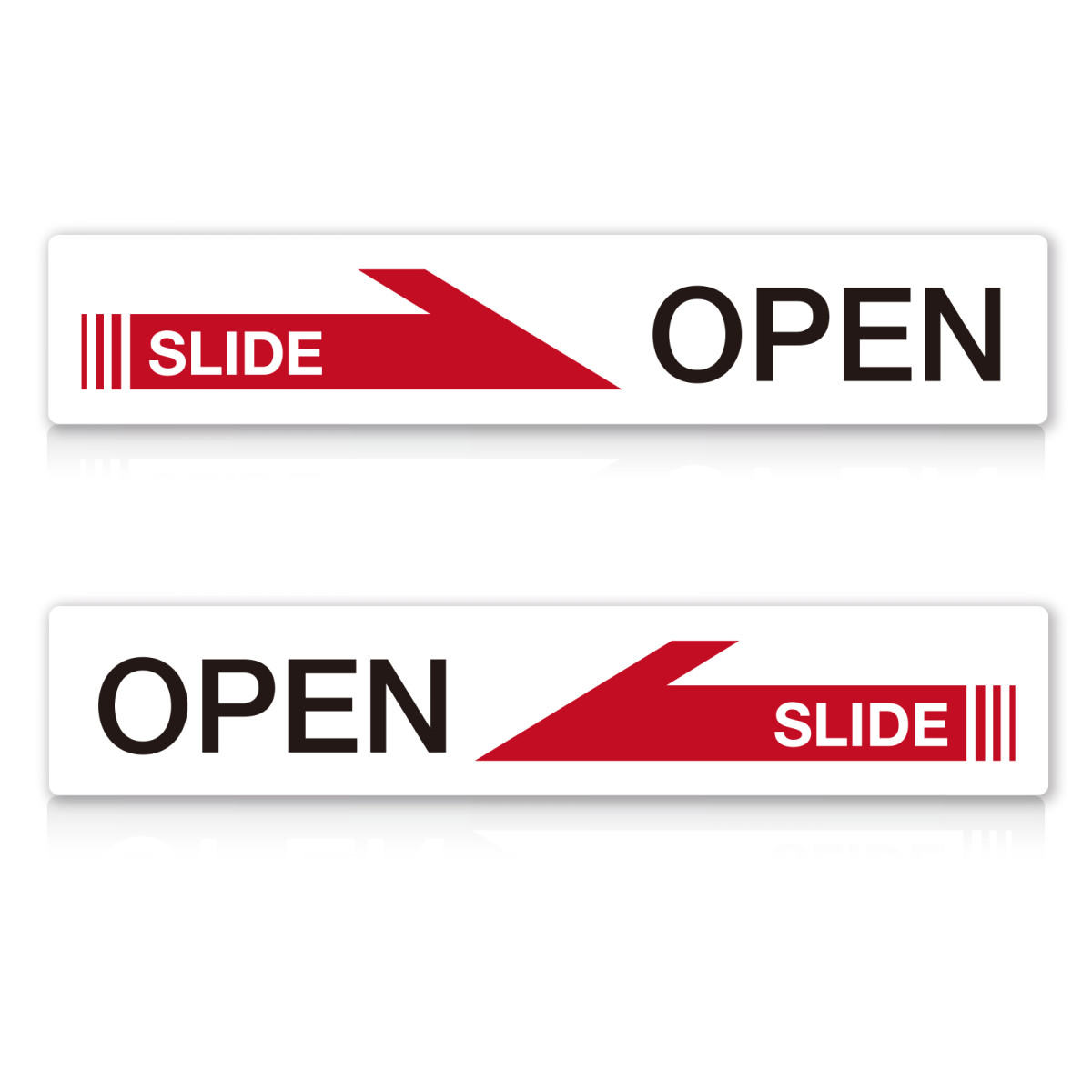 OPEN SLIDE ドア ステッカー ホワイト 横長 英語表記 2枚セット 左右 矢印 4素材 選べる おしゃれ 玄関 店舗 防水 高耐候 シール 送料無料 SAFETY MANIA