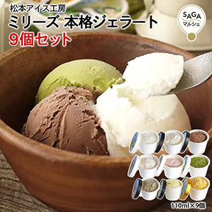 | 名称 | 松本牧場本格ジェラート ミリーズ9個セット | | 原材料 | 【ミルク】:生乳(佐賀県産)、乳製品、グラニュー糖、ブドウ糖/トレハロース、乳化剤、安定剤(増粘多糖類) 【バニラ】:生乳(佐賀県産)、乳製品、グラニュー糖、ブドウ糖/トレハロース、乳化剤、安定剤(増粘多糖類)、香料 【チョコレート】:生乳(佐賀県産)、乳製品、グラニュー糖、チョコレート、カカオパウダー、ブドウ糖/トレハロース、乳化剤、安定剤(増粘多糖類)、香料 【ヨーグルト】:生乳(佐賀県産)、乳製品、グラニュー糖、ブドウ糖/トレハロース、乳化剤、安定剤(増粘多糖類) 【いちご】:生乳(佐賀県産)、いちご、いちごピューレ、乳製品、グラニュー糖、ブドウ糖/トレハロース、乳化剤 【抹茶】:生乳(佐賀県産)、乳製品、グラニュー糖、抹茶、ブドウ糖/乳化剤、安定剤(増粘多糖類) 【黒ごまきなこ】:生乳(佐賀県産)、乳製品、グラニュー糖、黒みつ、黒ごま、ブドウ糖、きな粉(大豆を含む)/トレハロース、乳化剤、安定剤(増粘多糖類) 【熟成焼いも】:生乳(佐賀県産)、芋、乳製品、グラニュー糖、ブドウ糖、塩/安定剤(増粘多糖類) 【みかんシャーベット】:みかん(佐賀県産)、みかんジュース(濃縮還元)、グラニュー糖、みかん皮/安定剤(増粘多糖類) | | 内容量 | 110ml×9個(ミルク・バニラ・チョコレート・ヨーグルト・いちご・抹茶・黒ごまきなこ・熟成焼いも・みかんシャーベット)各1個 | | 賞味期限 | 表示なし | | 保存方法 | 要冷凍(-18度以下で保存してください) | | アレルギー | 乳、ごま、大豆 | | 製造(販売)者 | 松本アイス工房 |