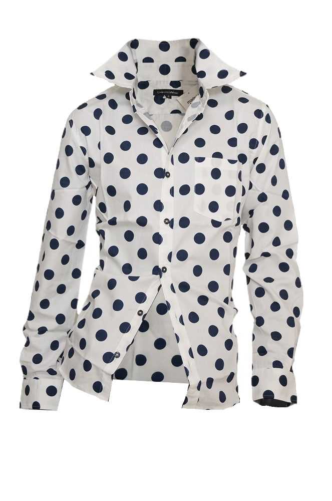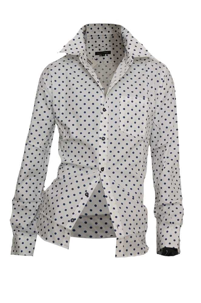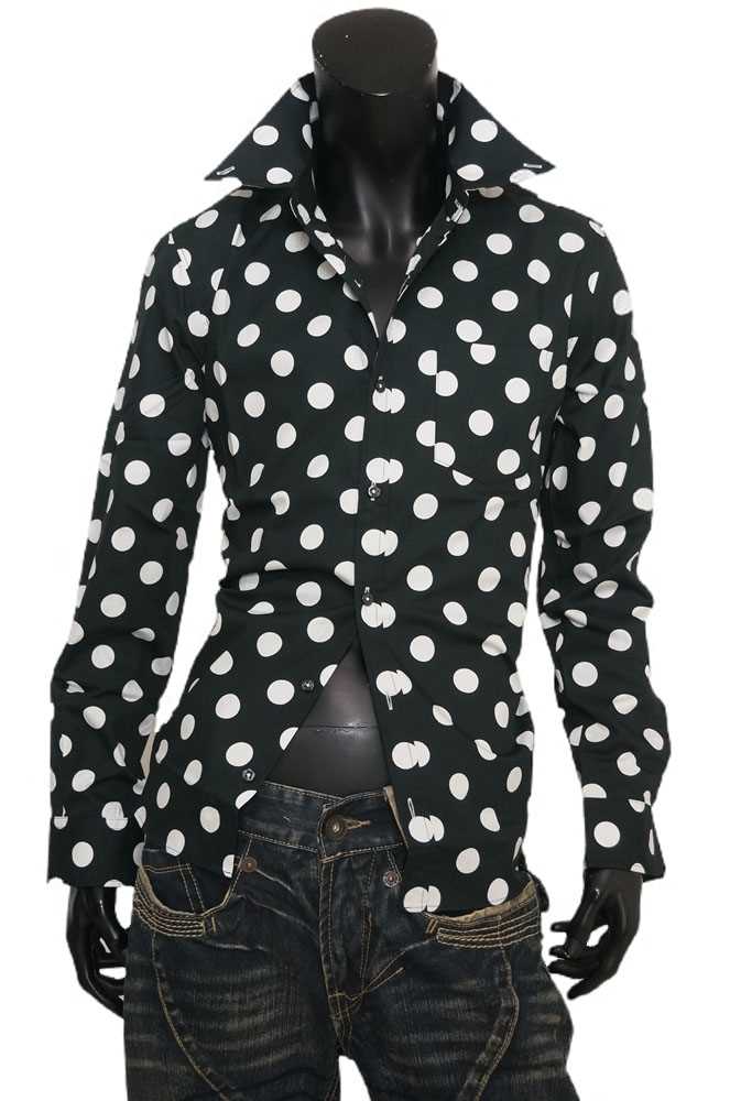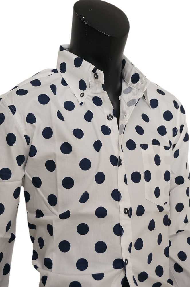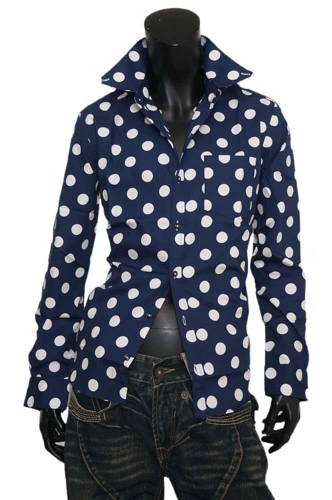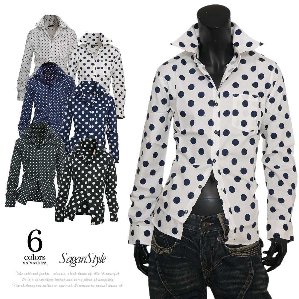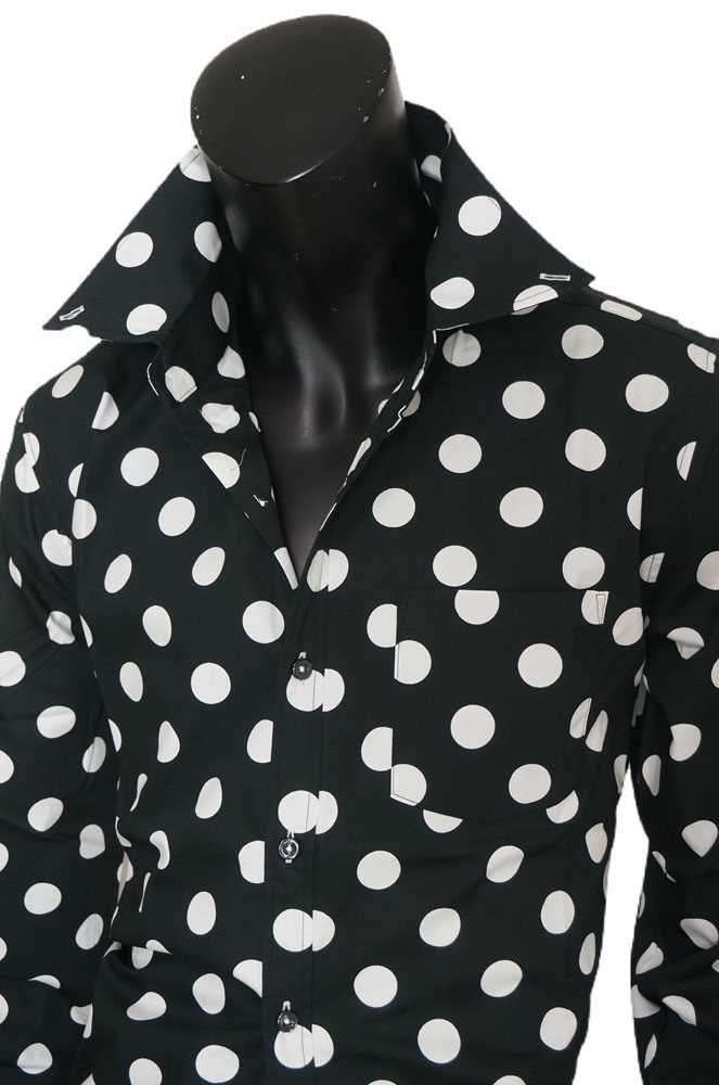 【送料無料】キレイメ系トラッド水玉ドット柄ドレスシャツ 大水玉 小水玉 ビッグドット ミドルドット 長袖シャツ