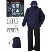 レインウェア 上下 大きいサイズ メンズ 透湿防水 合羽 フード 収納ポーチ付 ベンチレーション キングサイズ ビッグサイズ ビッグシルエット
