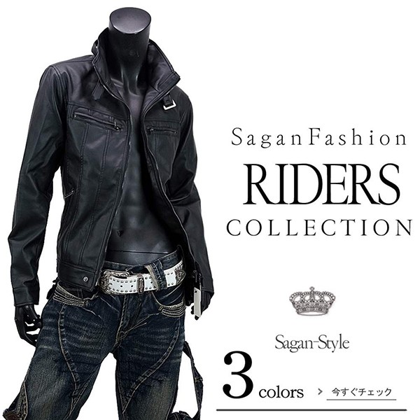 ライダースジャケット メンズ シングルライダース フェイクレザー シングルジップ 首ベルト og1
