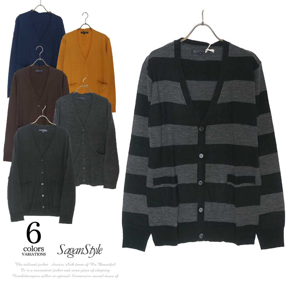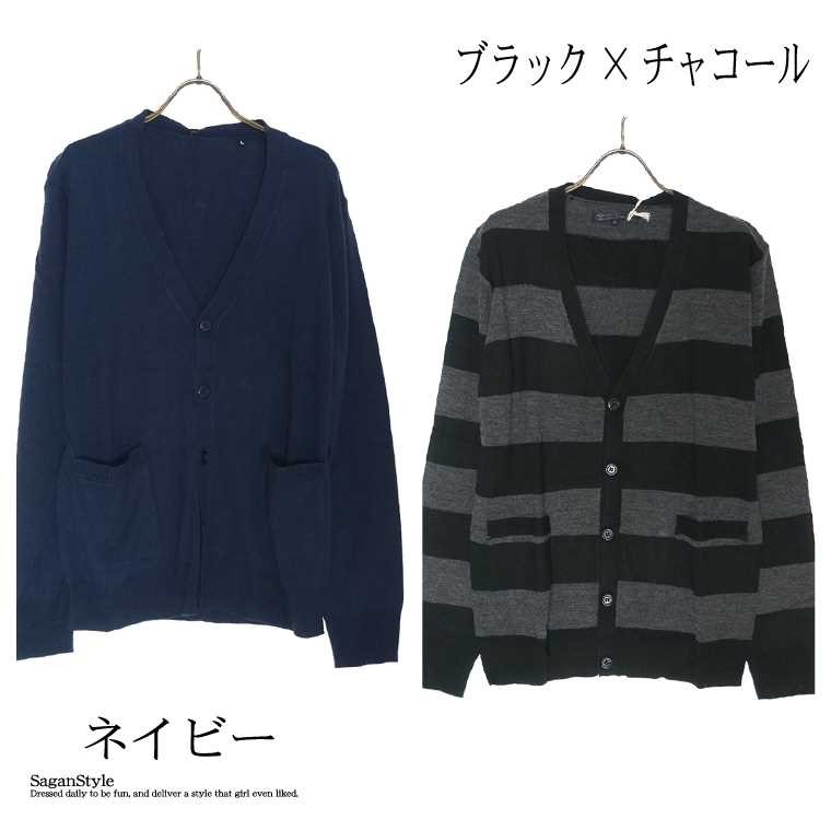 メンズ 男性 ファッション 服 ニット カシミアタッチVネックカーディガン カラーカーデ ボーダー カジュアル おしゃれ トップス 長袖