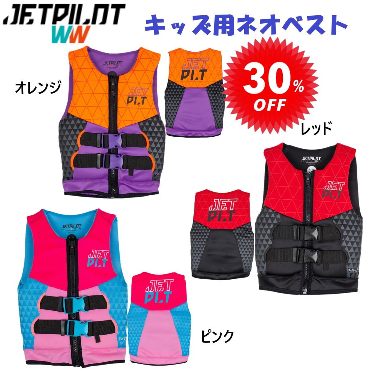 ジェットパイロット JETPILOT キッズ フローティングベスト セール 30%オフ 送料無料 コーズ キッズ F/E ネオ ベスト JA20211C 子ども用