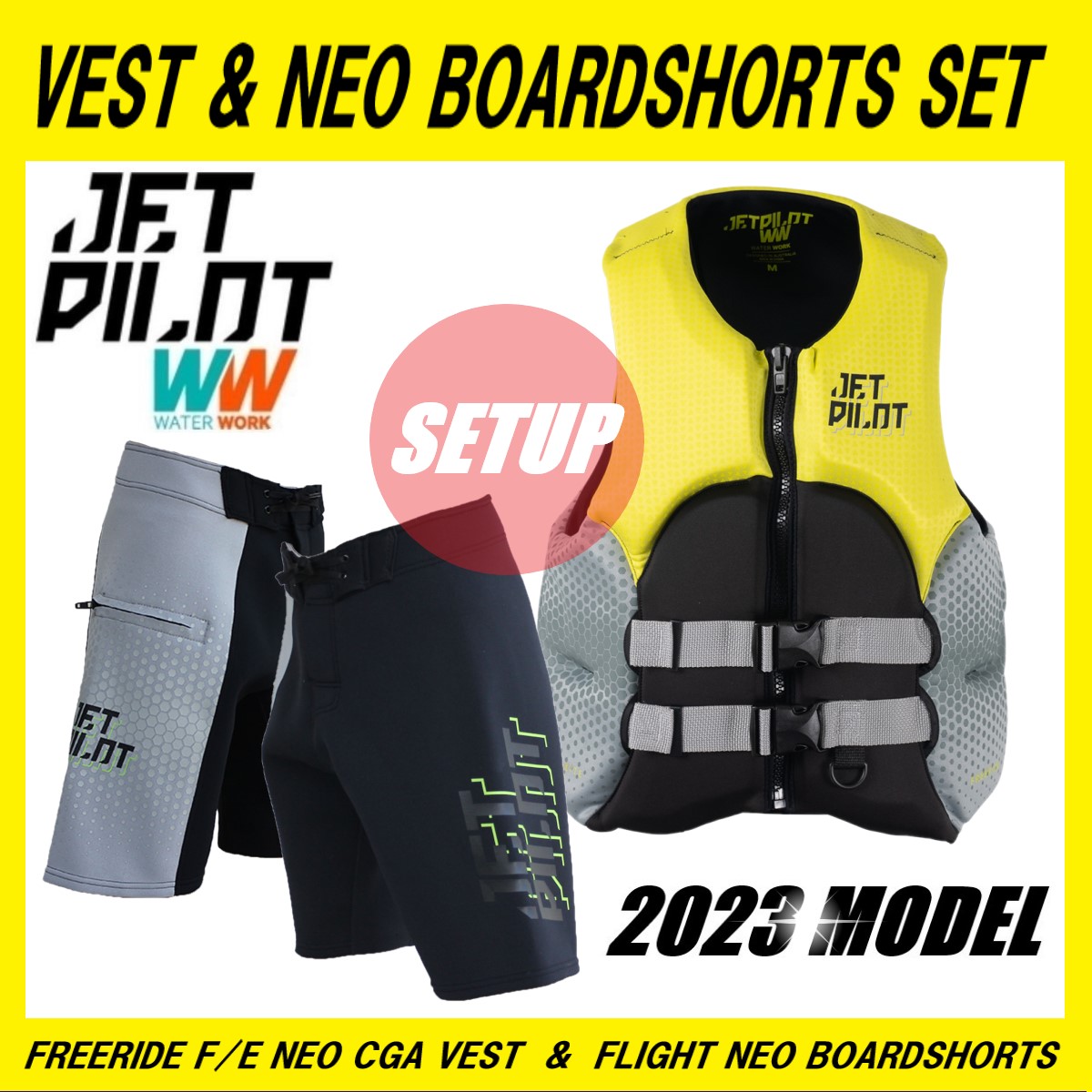 ジェットパイロット JETPILOT 2023 2点セット 送料無料 フリーライド ベスト フライト ボードショーツ JA23113CGA JA22900-1 イエロー S