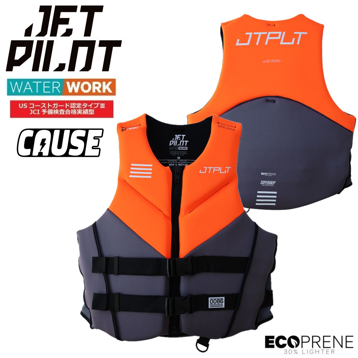 ジェットパイロット JETPILOT 2026 ライフジャケット JCI認定 送料無料 コーズ CGA ネオ ベスト JA25148CGA チャコール/オレンジ M