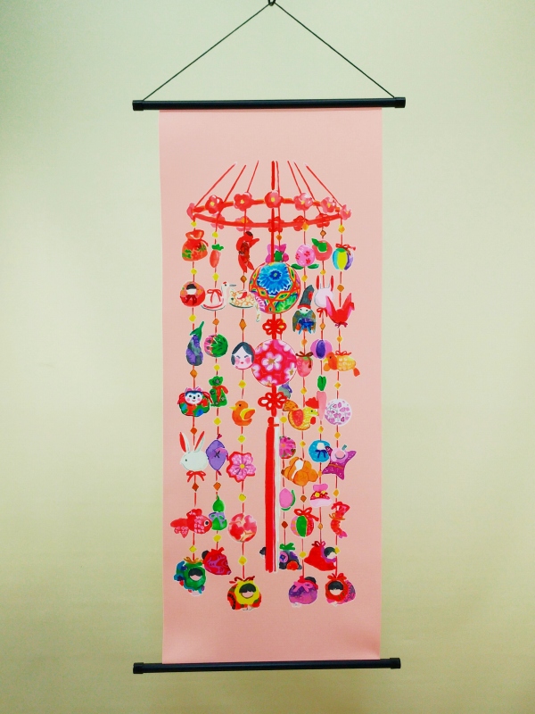 桃の節句のお祝い雛飾りの背景に手軽に、つるし雛さげもん風習の飾り付けを加える事ができます