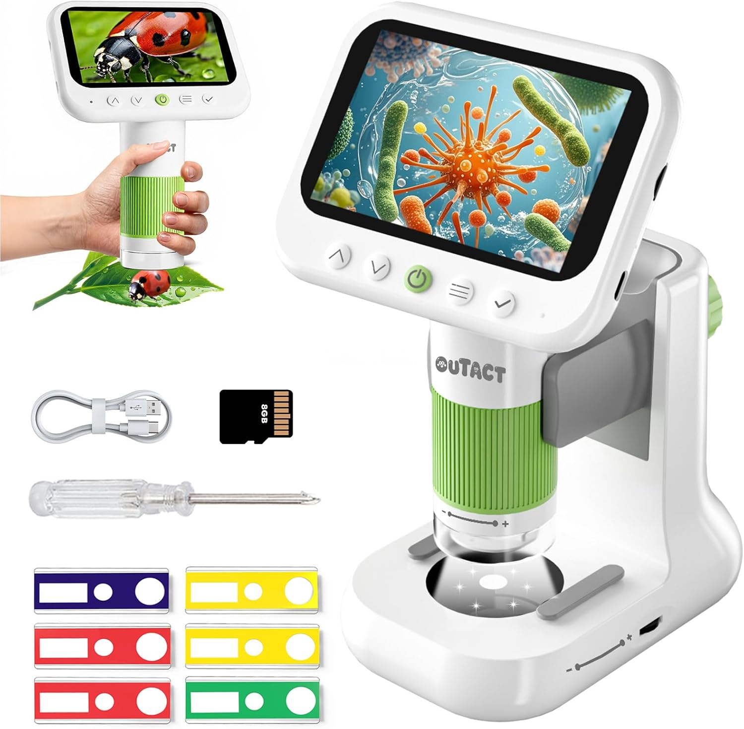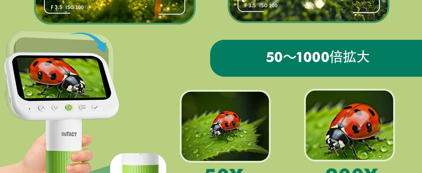 B0FMFKLPZJ 子供用 デジタル顕微鏡 ハンディ顕微鏡 1080p 50-1000X マイクロスコープ 見やすい 4.3インチIPS PC接続可能 画像保存 8GBメモリーカード持ち運び ポータブル 昆虫 生物観察 教育用 夏休み 自由研究 簡単操作 初心者 小学生向け