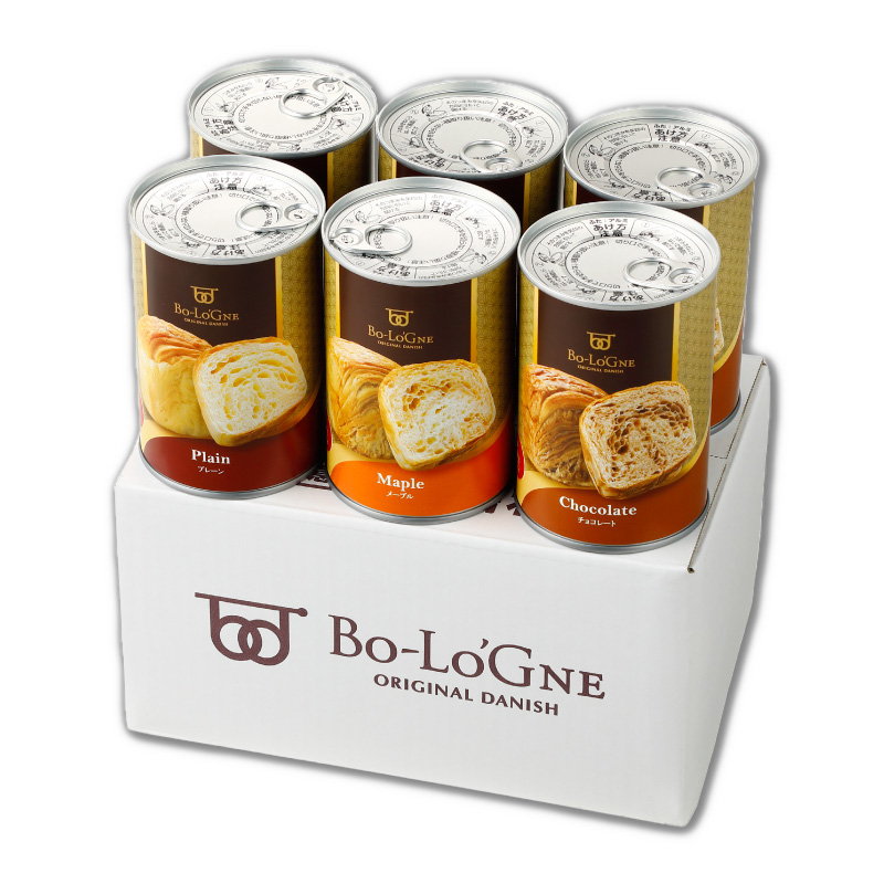 缶deボローニャ 6缶セット 商品詳細 | おいしすぎる非常食「缶deボローニャ」の3種のお味をそれぞれ2缶ずつミックスしてセットにしました。 5年の長期保存タイプです。 | 内容量 | (50g×2個入)×6缶 (プレーン・メープル・チョコ各2缶) | 保存期間 | 製造から5年 | 原材料名 | ・プレーン(355Kcal)/小麦粉、ファットスプレッド(大豆を含む)、砂糖、マーガリン、卵、乳などを主要原料とする食品、食物繊維、食塩、 パン酵母、果糖ブドウ糖液糖、乳化剤、香料、着色料(カロチン)