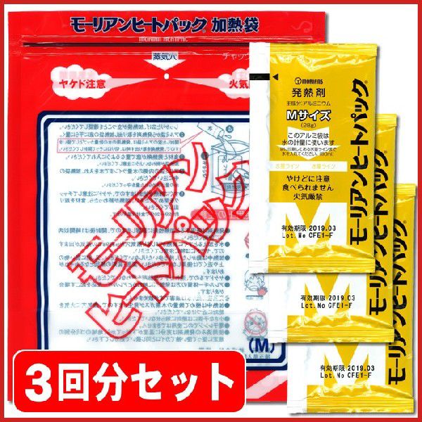◆ モーリアンヒートパックMサイズ 3回分セット ◆ 内 容 | 加熱袋 1枚(23cm×28cm) 発熱剤 3個(16.5cm×9cm) ※加熱袋は繰り返しお使いいただけます | 加熱時間 | 15〜20分 | ゴミの捨て方 | ・使用後の発熱剤は十分に温度が下がってから、 市町村の区分に従って処分してください。 ・使用済み発熱剤は、酸性土壌をアルカリ性土壌に中和させる 働きがあるため、土壌改良に有効です。家庭菜園、植木鉢等に 埋め込んでご使用いただけます。 ・使用後の残水は無害なので、そのまま土壌などに捨てられます。 |