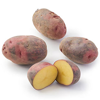 赤と紫のまだら模様の皮が特徴の甘いジャガイモ