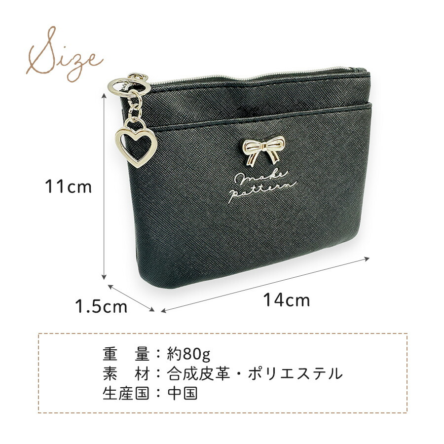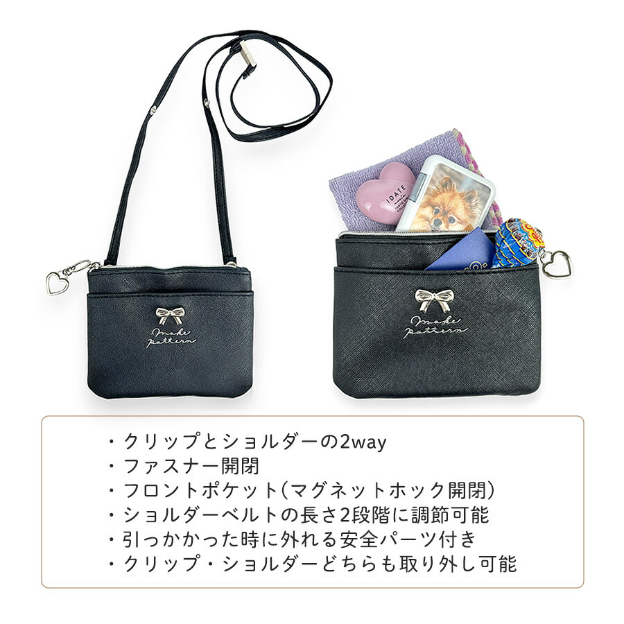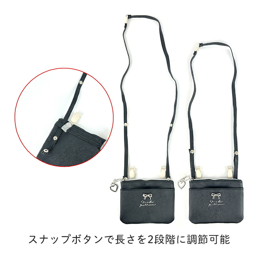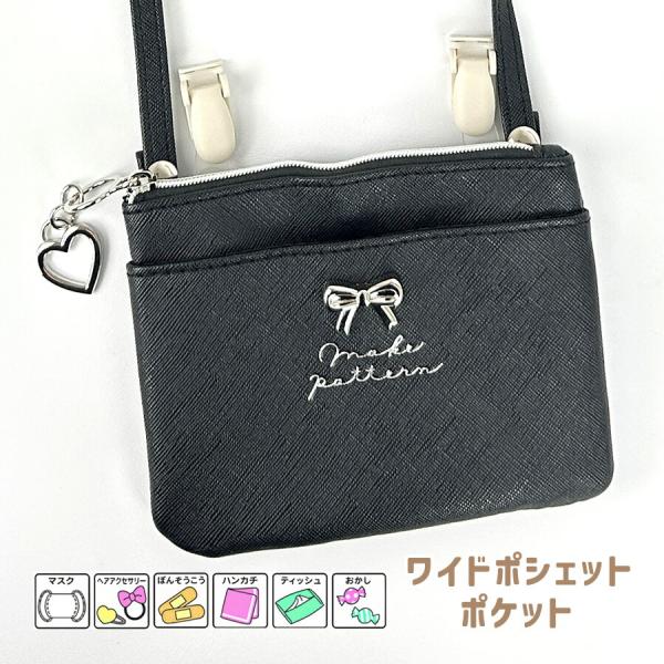 ブラックカラーにシルバーのりぼんとハートがかわいい移動ポケット
