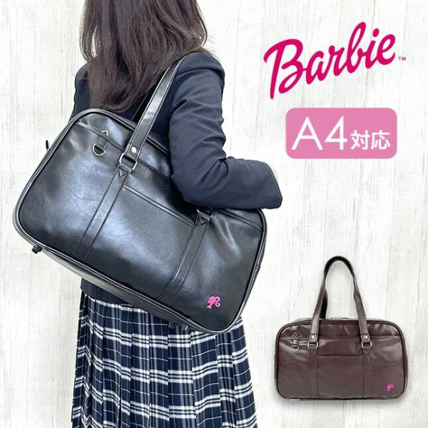 世界一有名なファッションドール「バービー」のロゴが刺繍されたスクールバッグ。