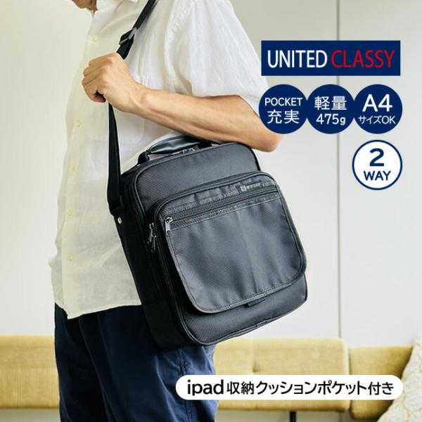 ショルダーバッグ メンズ ビジネスバッグ タテ型 縦型 A4 斜めがけ 手提げ 通勤 小さめ 人気 軽量 黒 大容量 5188 UNITED CLASSY