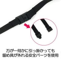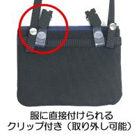 | 仕 様 | | | メインマジックテープ開閉 メインにポケット×2 クリップ留めとショルダータイプの2way クリップ・ショルダー取り外し可能 ショルダーベルト長さ調節可能(二段階) 引っ掛かり時にベルトが外れる安全パーツ 裏地に抗菌防臭生地を使用 | |