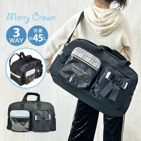 ■mcb-605 Merry Crown メリークラウン フタポケリボンボストンバッグ 3WAY