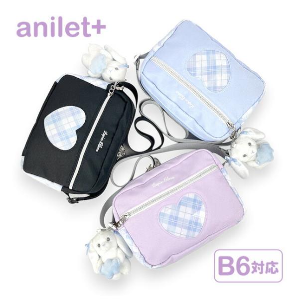 天使の羽がかわいいたれ耳うさぎのマスコット付きヨコ型ショルダーバッグ。