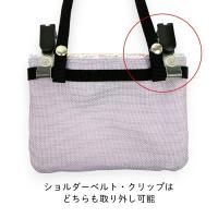 クリップでポケットがない服に取り付けられ、ショルダータイプでも持てる2WAY仕様。