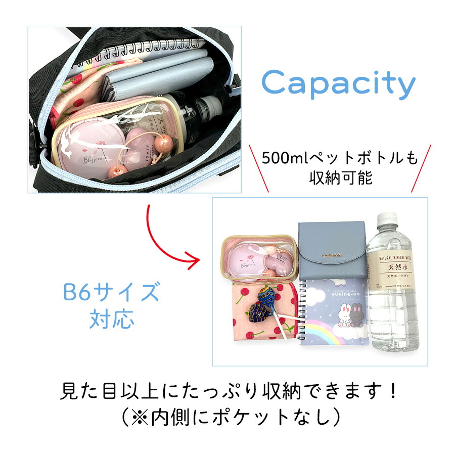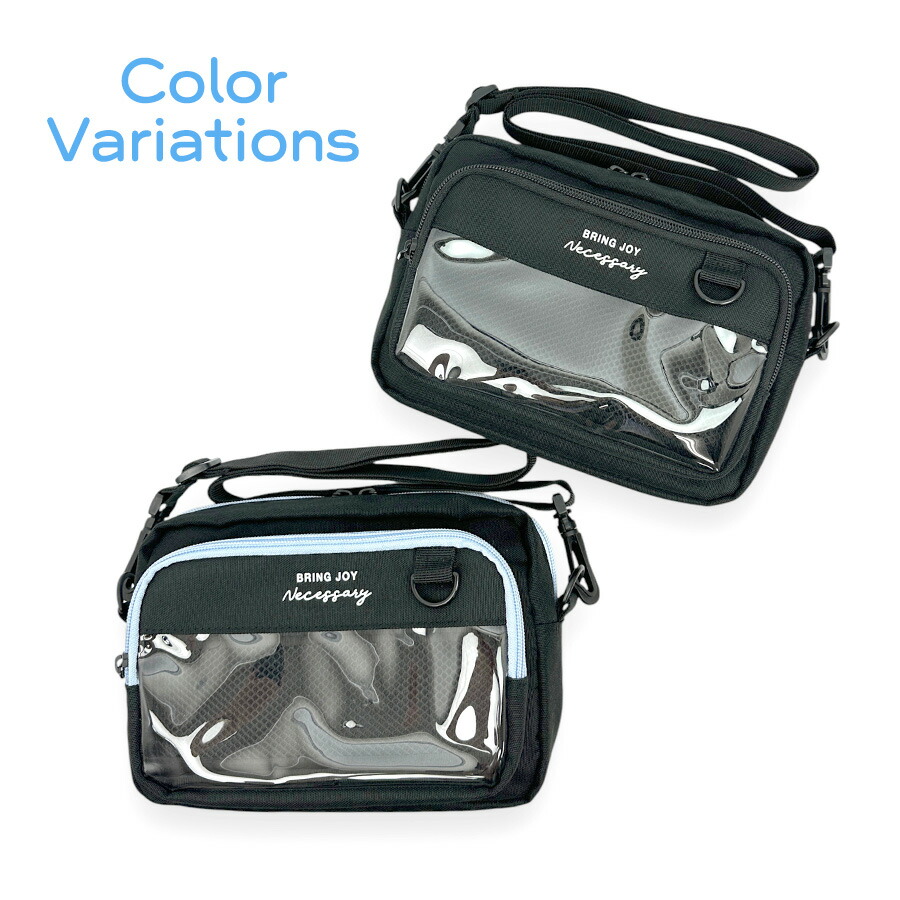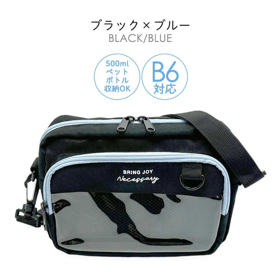 [イメージ・関連] おしゃれ オシャレ お洒落 かわいい 可愛い キュート ガーリー 使いやすい 便利 人気 売れ筋 おすすめ 流行 カジュアル / ブラック 黒 クロ ブラック×ブルー 水色 布製 軽量 軽い クリア窓 クリアポケット b6 #韓国風 ファスナー開閉 推し活 推しバッグ 500ペットボトル シンプル