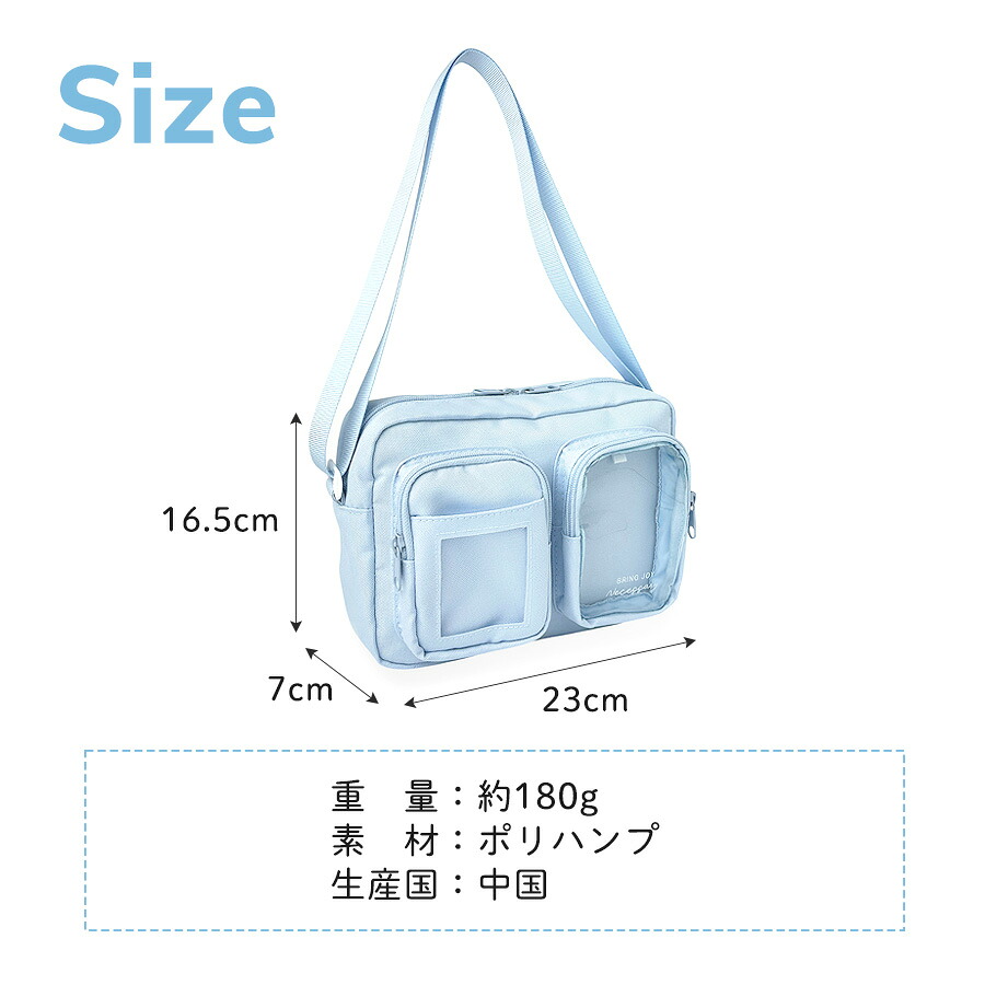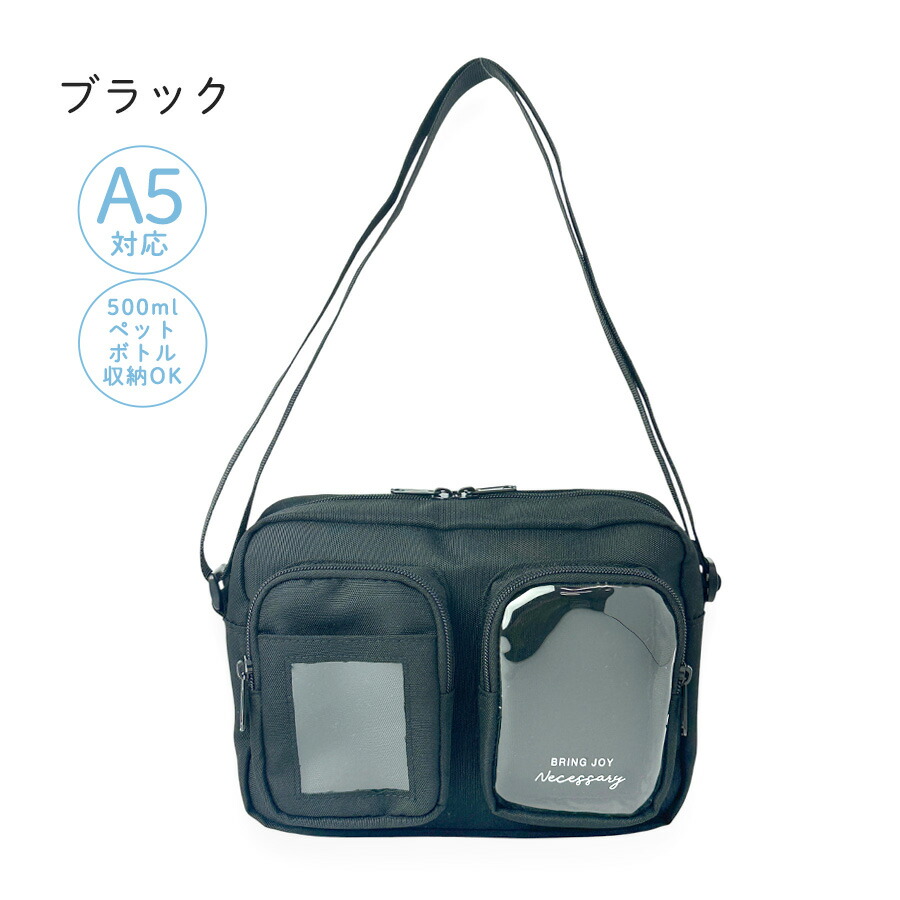 [イメージ・関連] おしゃれ オシャレ お洒落 かわいい 可愛い キュート ガーリー 使いやすい 便利 人気 売れ筋 おすすめ 流行 カジュアル / ブラック 黒 クロ ライトブルー ポケット 500mlペットボトル収納可能 韓国風 韓国っぽ オルチャン ガーリー キーホルダー ぬい活 チャーム 推し活 推し事 ファスナー開閉 シンプル 軽い 軽量 透明窓 クリアポケット ラッピング無料 ラッピング袋無料 ラッピング対応