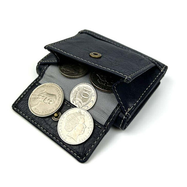 コンパクトなデザインですが背面にフラップ小銭入れ付き。