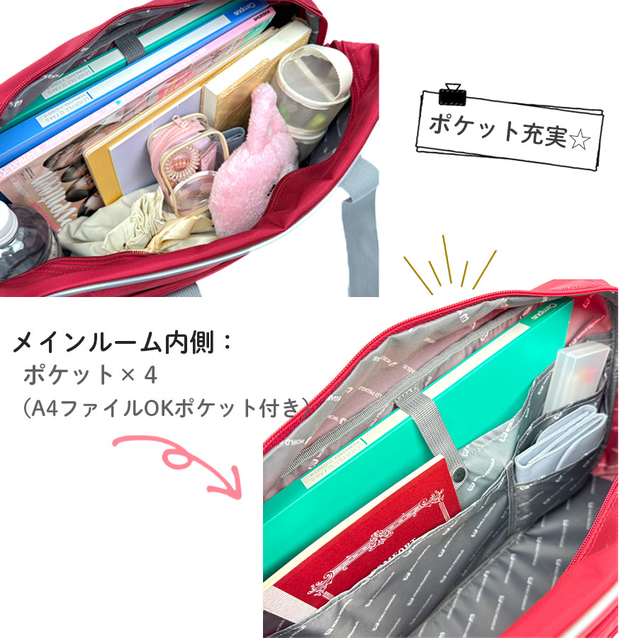 [イメージ・関連] おしゃれ オシャレ お洒落 かわいい シンプル 使いやすい 便利 人気 売れ筋 おすすめ 流行 カジュアル / レッド 赤 パープル ピンク A4対応 B4対応 Dカン付き ペットボトル可 底板付き 底鋲付き ブランド 大容量 自立 スクールバック サブバ