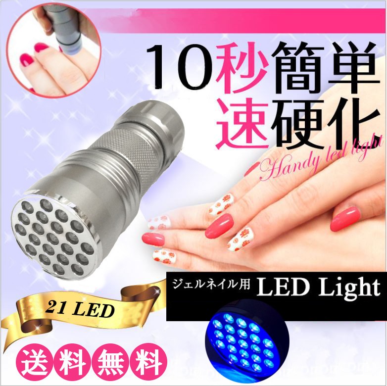 ペン型UV LEDライト 携帯用/21灯/ジェルネイル/シルバー/ネイル ちょこっとお直しに便利
