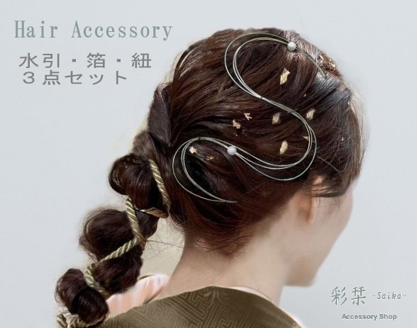 水引 箔 組紐3点セット #7100548G 髪飾り 成人式 卒業式ヘア 振袖ヘア 袴 前撮り 水引ヘア 金箔ヘア 組紐 ツイストコード 人気