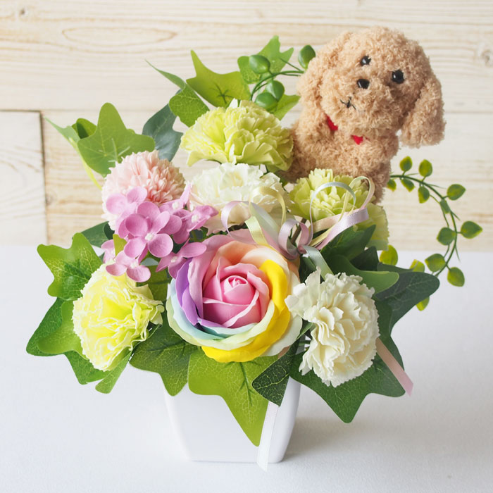 ソープフラワー お供え花 ワンちゃんピック付き ペット用 犬 お悔やみ 枯れない 虹の橋 仏花 お花 造花