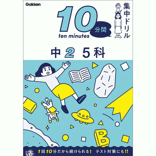 1回わずか10分の手軽さで、中2の主要5教科の基礎が確実に身につくドリル。使いやすい書き込み式で、学年の総復習や入試対策の基礎固めが、効率よくできる。教科ごとの「総復習テスト」で実力チェックもできる。【新学習指導要領対応】