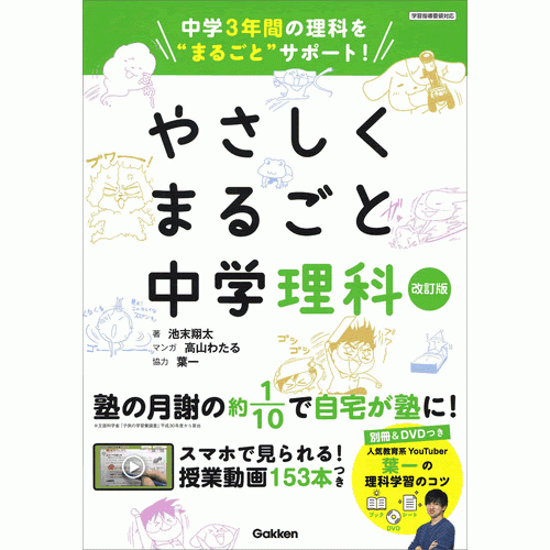 中1内容-高校入試対策の3年分の内容を1冊に凝縮。YouTubeではこの本をテキストにした動画授業をすべて公開。いつでも授業が受けられる。付属DVDには「伸びる勉強法」を収録。誌面にはマンガが散りばめられヤル気が続く。