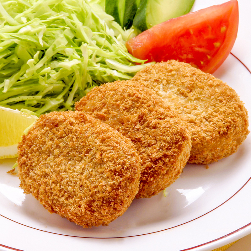 | 原材料 | 野菜(国産)(馬鈴薯(遺伝子組み換えでない)、玉葱、人参、)、牛肉(国産)、豚肉(国産)、パン粉、小麦粉、粗糖、醤油、塩、香辛料、にんにく、 (一部に大豆・小麦・牛肉・豚肉・乳成分を含む) 揚げ油にラード使用 |
