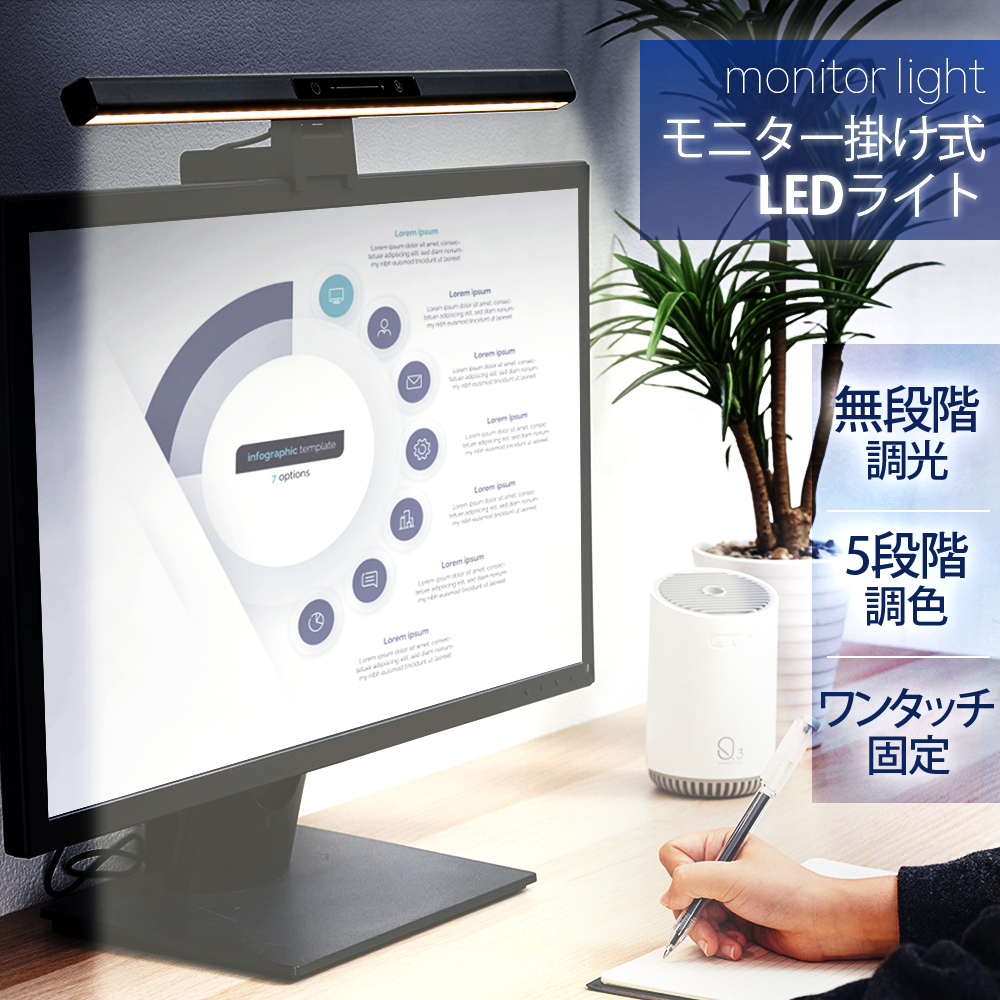 LEDモニターライト PCライト モニターライト スクリーンバー クリップライト 間接照明 目に優しい デスクライト テレワーク 無段階調光 デスクトップ hsd-pl460