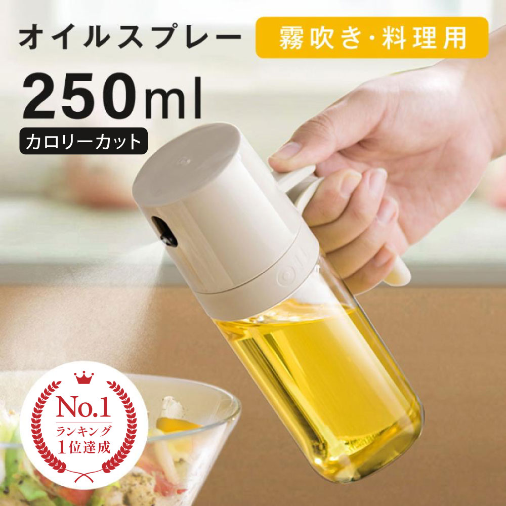 シュッとひと吹き!食用オイルの使用量を調節できるオイルスプレー。食用オイルを霧状に噴射して均等に吹きかけることができて、調理の効率や料理の仕上がりもよくなり、簡単にカロリーカット&節約できます。健康にも家計にもやさしいキッチンアイテムです。