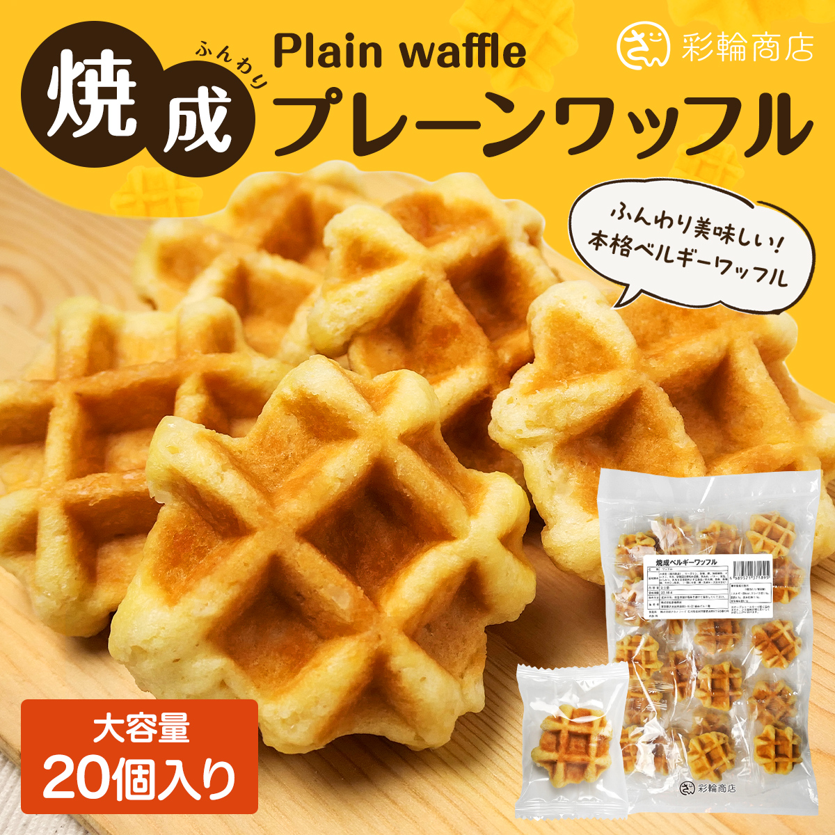 ワッフル 国内製造 ベルギーワッフル わっふる プレーン 個包装 20個入り お菓子 焼菓子 スイーツ ギフト おやつ 彩輪商店 送料無料