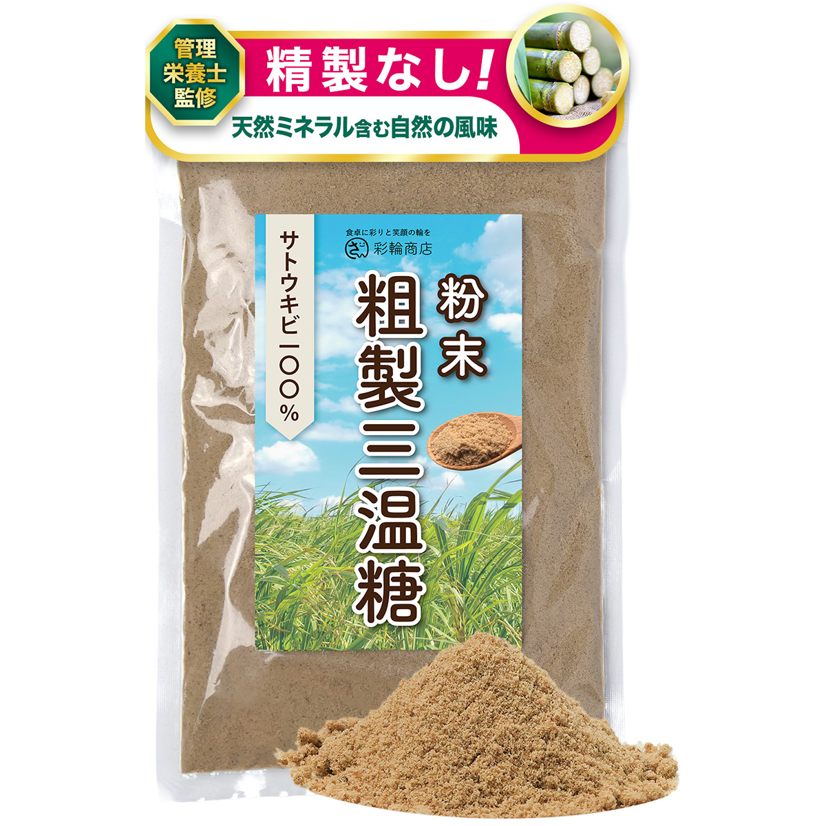 管理栄養士監修 彩輪商店 粗製三温糖 無添加 精製されていない 三温糖 さとうきび100% 粉末 砂糖 粉砂糖 粉糖 さんおん糖 粗製糖 顆粒 ミネラル 250g