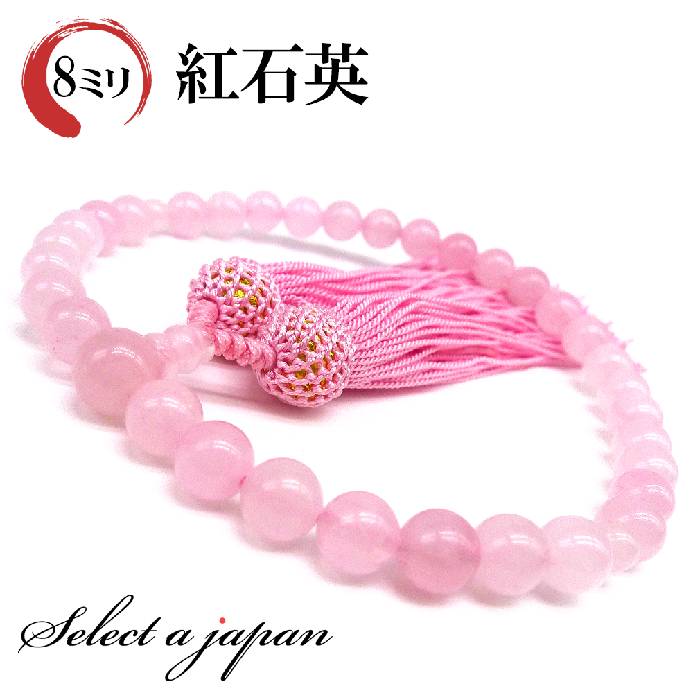 「職人仕立て」 女性用 数珠 8mm 紅石英(ローズクォーツ) 念珠