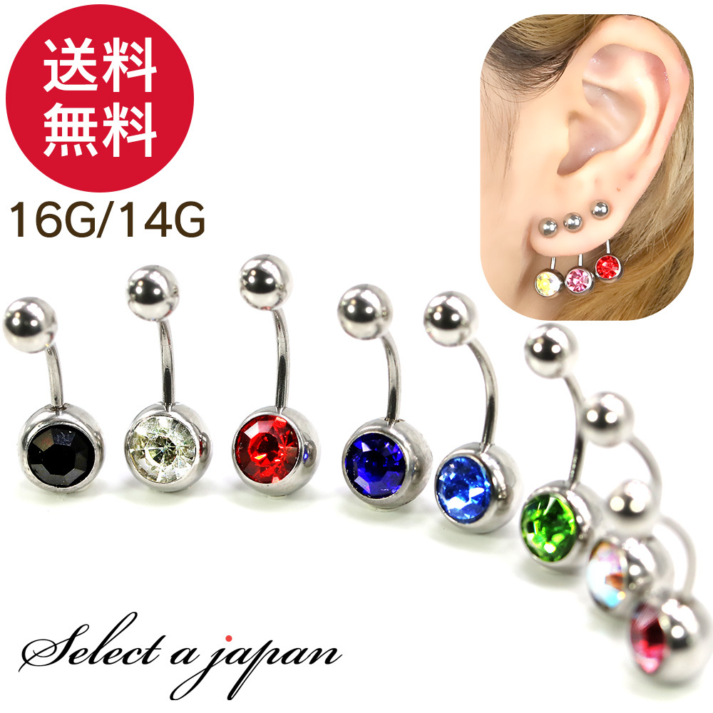 ボディピアス 16G 14G バナナバーベル カーブバーベル 覆輪 ストーン 1個付 軟骨 ピアス ボディピ サージカルステンレス 16ゲージ 14ゲージ つけっぱなし トラガス 軟骨ピアス ボディーピアス 耳たぶ 舌ピ へそピアス インダストリアル ファーストピアス セカンドピアス ボデ ポイント消化 セール 送料無料 あり