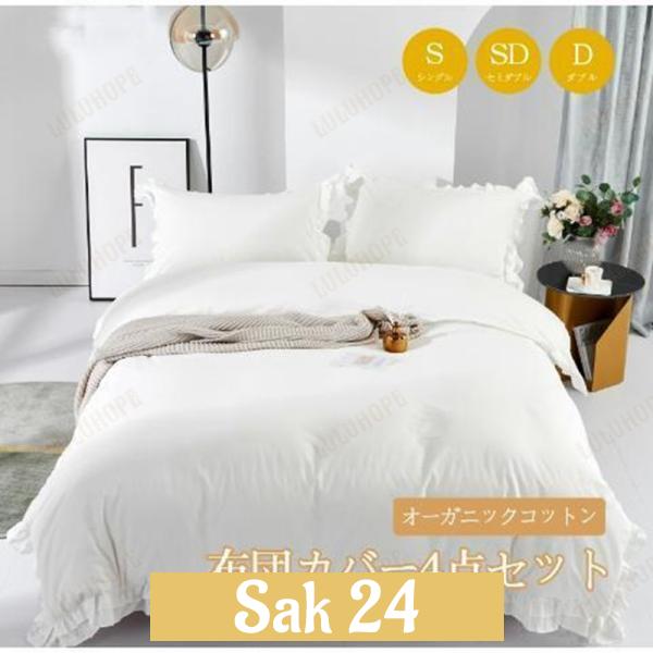 布団カバーセット ホワイト フリル 綿 無地 シングル セミダブル ダブル 丸洗い 「布団カバー ボックスシーツ 枕カバー」北欧