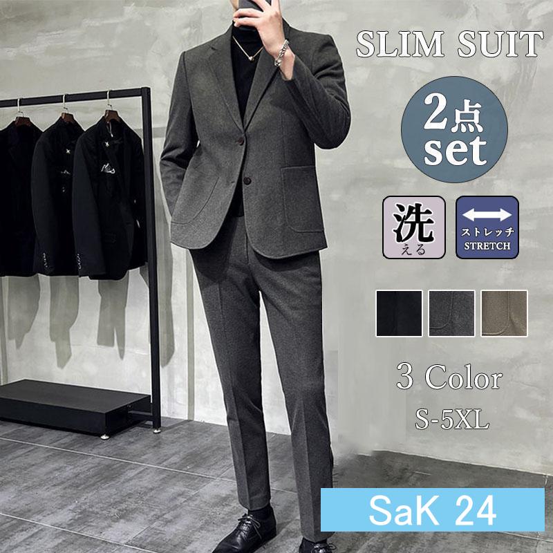 スーツ メンズ ス 上下2点セット 2つボタン レギュラーフィット 上下洗える ウォッシャブル 2ピーススーツ ズボン 伸縮 ストレッチ ビジネス