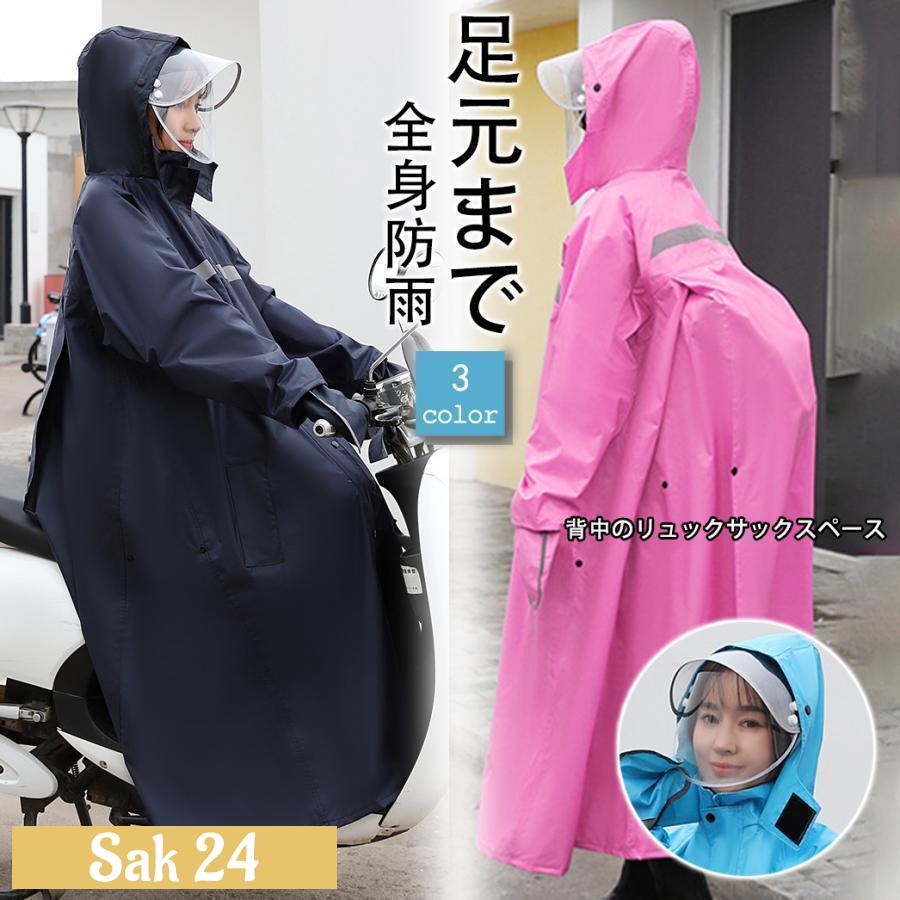 レディース メンズ ポンチョ リュック カッパ ロング丈 自転車 バイク 雨具 反射テープ おしゃれ 通学通勤 厚手 超軽量 防水 ワークマン 二重つば クリアバイザー