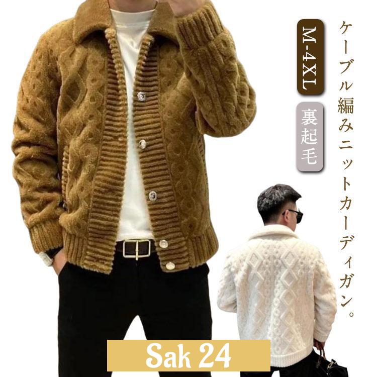 秋冬 厚手 メンズ カーディガン 暖かい 裏ボア ニット ケーブル ボア ニットカーディガン 前開き 男性 ニットセーター 冬 厚